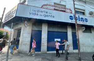 O Jornal A Plateia registrou a informação que constava na porta da loja