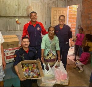 Corpo de Bombeiros entrega cestas de Páscoa para crianças do Clube de Mães do São Paulo