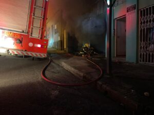 Profissionais precisaram utilizar o equipamento de proteção respiratória para combater o fogo