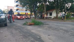 Sinalização improvisada de buraco no centro de Livramento chama a atenção da população