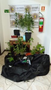 Além da droga, foram apreendidos dinheiro, uma balança de precisão, um notebook e uma estufa portátil