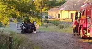 Carro pega fogo no centro de Livramento