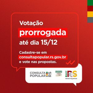 A Consulta Popular 2021 é promovida pela Secretaria de Planejamento, Governança e Gestão do Rio Grande do Sul e pelos 28 Conselhos Regionais de Desenvolvimento (Coredes) do Estado.A escolha dos projetos prioritários da Consulta Popular 2021 estão abertas para votação foi prorrogada até o dia 15 de dezembro por meio do site consultapopular.rs.gov.br ou do […]