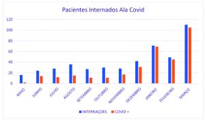 No mês de março, mais do que dobrou o número de pessoas internadas na ala destinada aos pacientes com suspeita ou acometidos pelo novo coronavírus