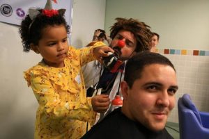 Trote solidário: crianças em tratamento contra o câncer cortam cabelos de calouros