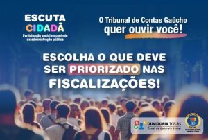 O prazo para participação na pesquisa do projeto Escuta Cidadã, promovida pelo Tribunal de Contas do Estado (TCE-RS), foi prorrogado até 21 de novembro. A iniciativa, que visa ampliar a participação da sociedade no controle das ações de fiscalização da administração pública, permite que o cidadão ajude a definir as prioridades de auditoria do […]