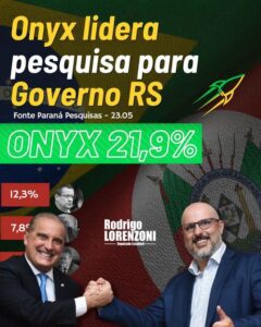 De acordo com a Paraná Pesquisas, em levantamento publicado nesta segunda-feira, o pré-canditado do PL, Onyx Lorenzoni, é líder da disputa quando consideramos o cenário que hoje é o mais provável de acontecer em outubro.
