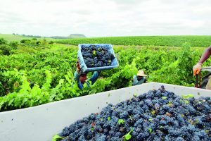 A vinícola dá início à colheita da uva e o tempo seco, o sol e o calor contribuíram para a maturação das frutas que cobrem os verdes campos aos pés do Cerro de Palomas