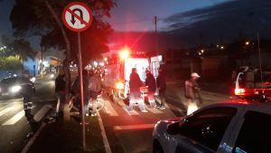 Motociclista para em faixa de pedestre e é atingido por veiculo na João Goulart