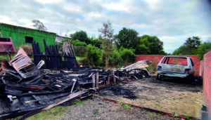 Um veículo, sem identificação, estava no local e também foi incendiado