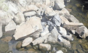 Partes do corpo estavam sob pedras pesadas em um rio que baixou de nível por causa da estiagem