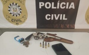 Um rifle e um revólver estavam escondidos na capa junto com um violão Na madrugada desta sexta-feira (2), a Polícia Rodoviária Federal prendeu um homem transportando sem autorização duas armas de fogo em um veículo na BR 153, em Bagé. O armamento, um rifle e um revólver, estava escondido em uma capa junto de um […]