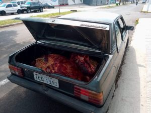 Na operação, foi apreendido um veículo Monza, com uma grande quantidade de carne clandestina no porta-malas