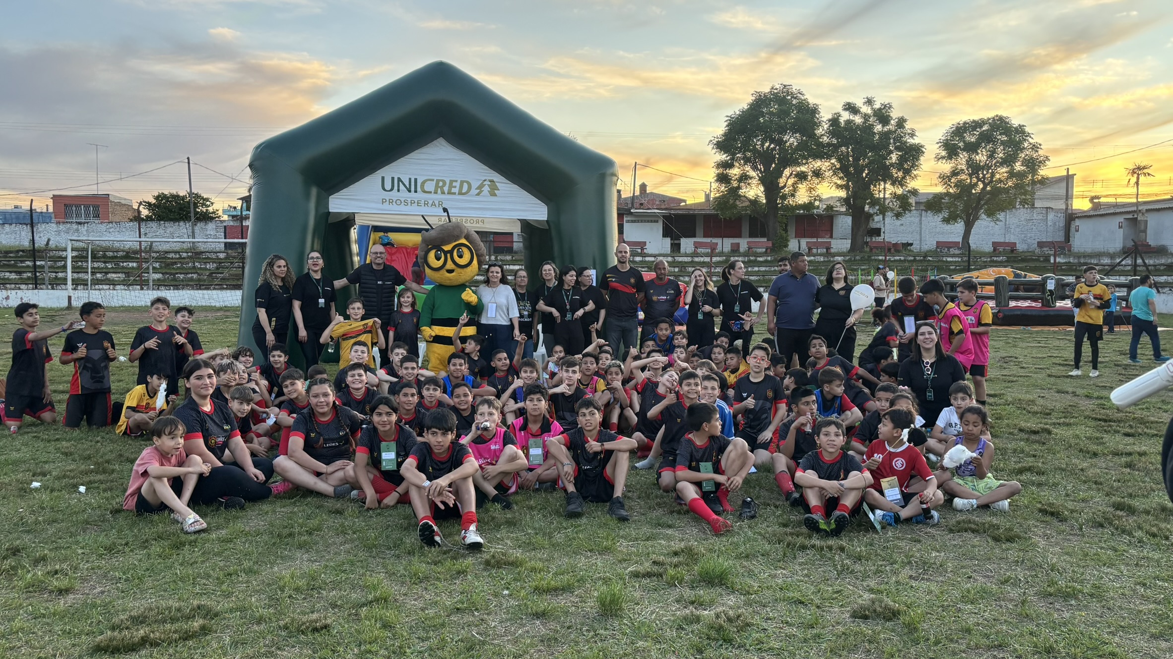 pag 2 – Crianças participam das atividades do evento “Quem Planeja Marca Golaço”, promovido pela Unicred Prosperar.